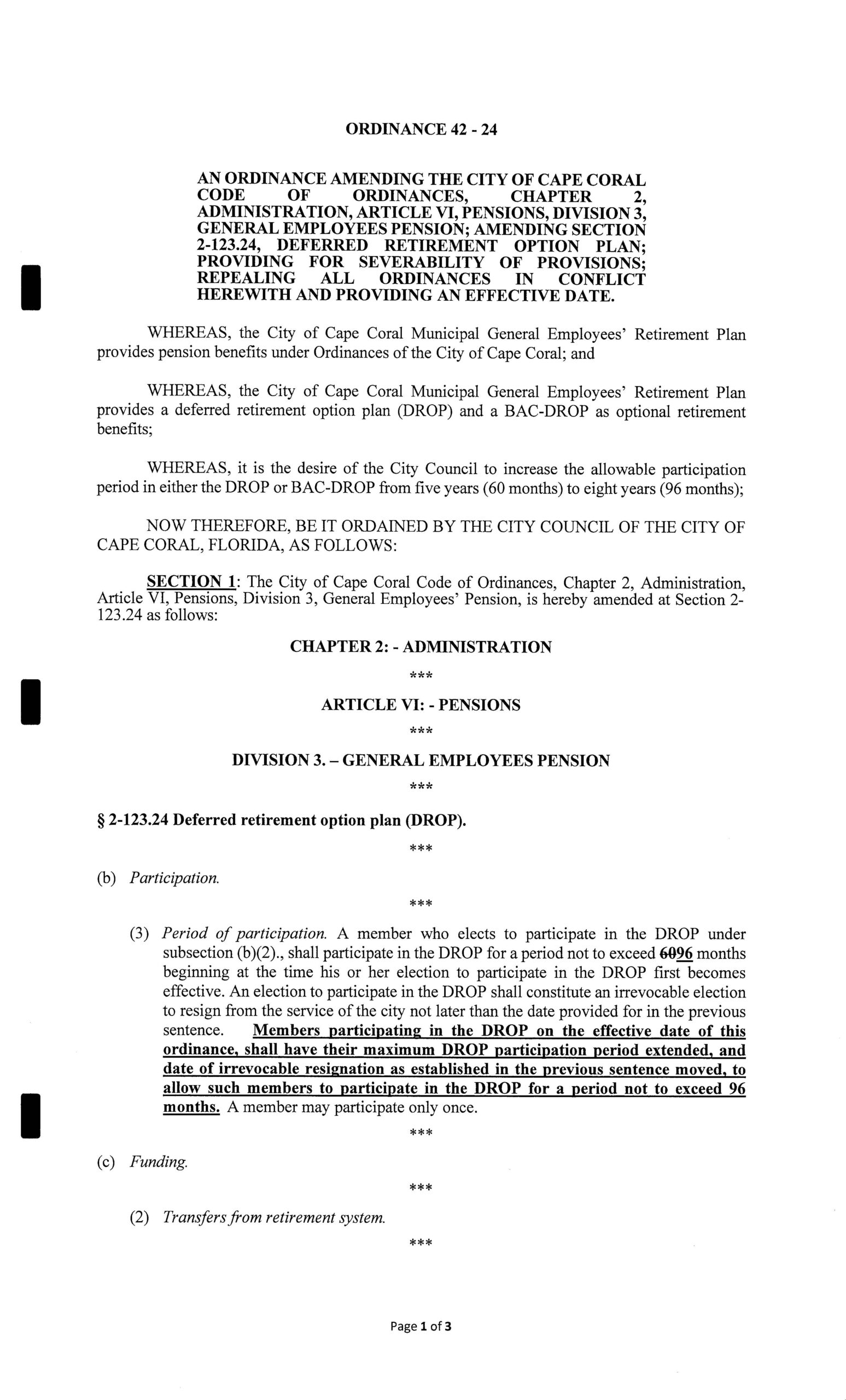 “Cape Coral Employees pushed for the expansion because they were not satisfied with the standard 5‑year DROP bonus.”